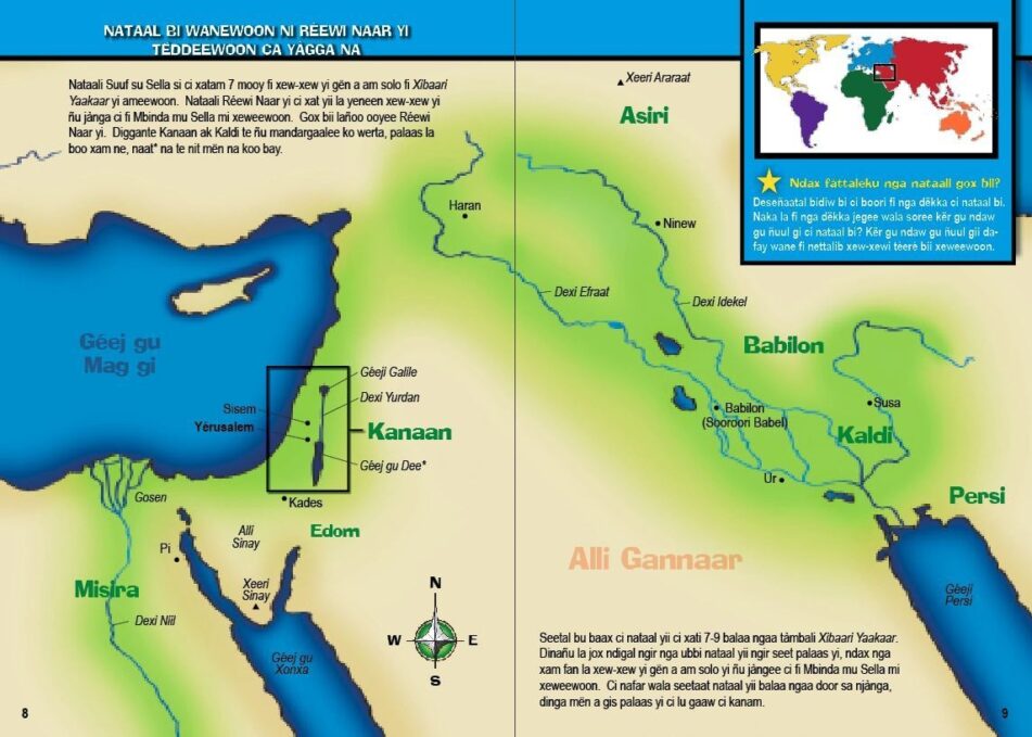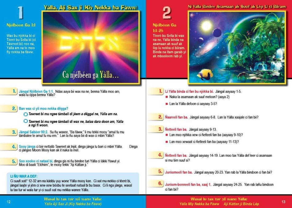 The Message of Hope Kids: Discovering the Provision in God's Plan - Wolof Edition, with plastic coil binding, is a full color adaptation of the adult-level book, The Message of Hope. It is visually designed and language level adapted for kids, ages 8-12. The Message of Hope Kids contains the same core content as the adult-level version: 40 key event-lessons for teaching and learning the Bible's big redemptive story and the Chronological Bridge to Life (ChronoBridge). A full page is dedicated to each of the 40 Bible event-lessons, allowing space for kids to write down the answers to the questions. This 64 page workbook also includes fun Bible map learning activities.