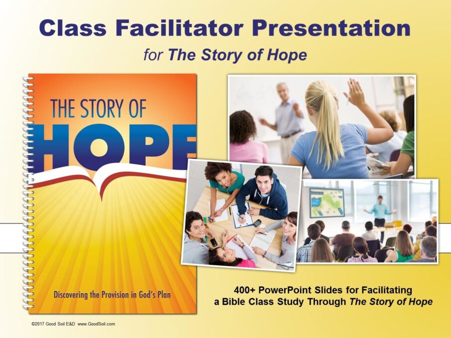 400+ PowerPoint slides for facilitating a Bible class study through The Story of Hope. Designed to accompany the FREE Class Facilitator Guide for The Story of Hope (curriculum for 31 class sessions). 94MB file.
