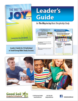 For use with the 2016 Edition of The Way to Joy - 64 pages, spiral bound. This guide, in contrast to Class Facilitator's Guide for The Way to Joy, is primarily focused on one-to-one (or small group) discipleship using The Way to Joy. But content in this Leader's Guide is needed for using the Class Facilitator's Guide. 44 pages. PRINTED HARD COPY. Also available as a Free Download.