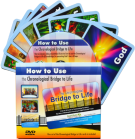 This ten minute video presentation illustrates how to use the Chronological Bridge (ChronoBridge) to Life in presenting God's story of hope. It's an excellent training or learning tool to use in preparation for teaching pages 31–39 of The Story of Hope, Lesson Two in The Way to Joy, and the ChronoBridge cards. DVD comes with a set of the Chronological Bridge to Life cards.