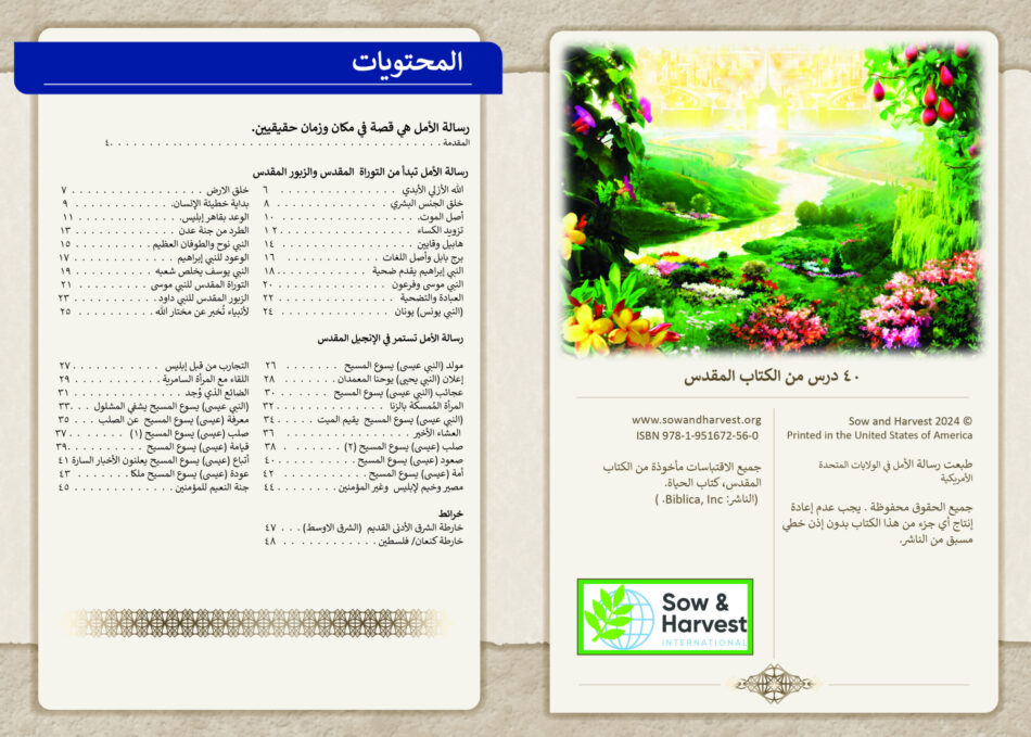 Written in Arabic, this is an evangelistic chronological Bible study of 40 redemptive events strategically chosen to address Muslim worldview and culture. Adapted from The Story of Hope, it incorporates the same flexibility of design to teach God's redemptive plan and is a time-flexible resource allowing one to present the Bible's big redemptive story in as few as fifteen minutes or as long as twenty or more hours. This Folk/Popular Islam version has pictures visualizing each event as well as Bible maps. This edition has one event per page with room for notes.