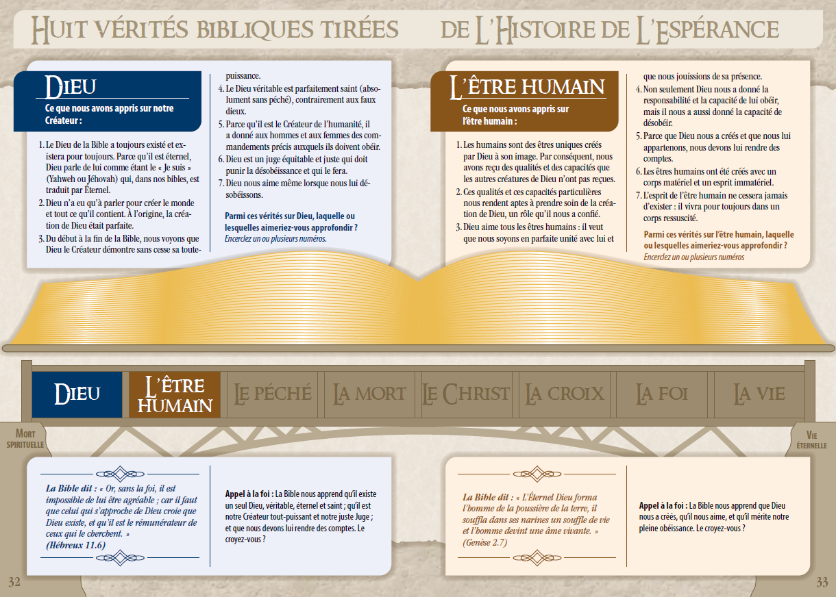 Le message de l’espérance est une étude biblique chronologique à visées évangéliques relatant 40 événements axés sur la rédemption (20 tirés de l’Ancien Testament et 20 du Nouveau Testament), tous choisis stratégiquement pour rejoindre les musulmans dans leur vision du monde et leur culture. Adaptée de L’histoire de l’espérance, elle présente la même flexibilité de conception pour enseigner le plan rédempteur de Dieu. Cette ressource, qui se veut modulable selon le temps disponible, permet de condenser la grande histoire biblique de la rédemption en quinze minutes à peine, ou encore de l’exposer en plus de vingt heures.