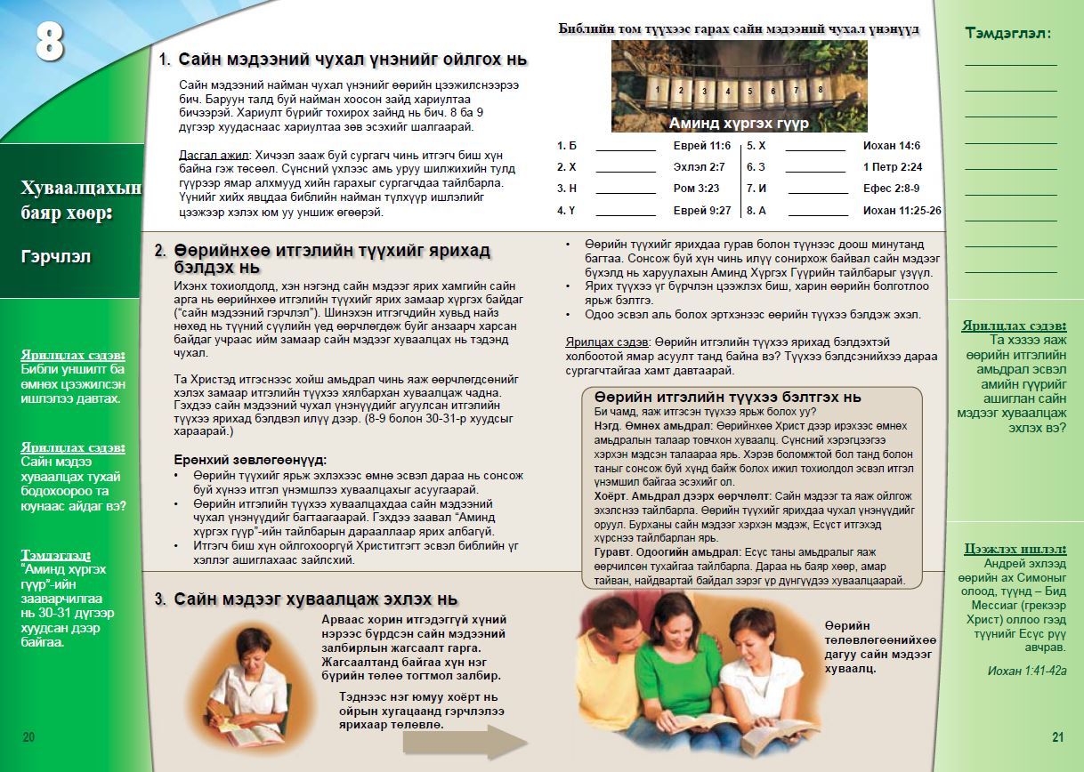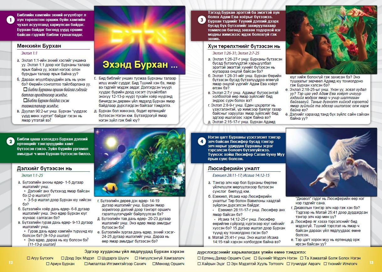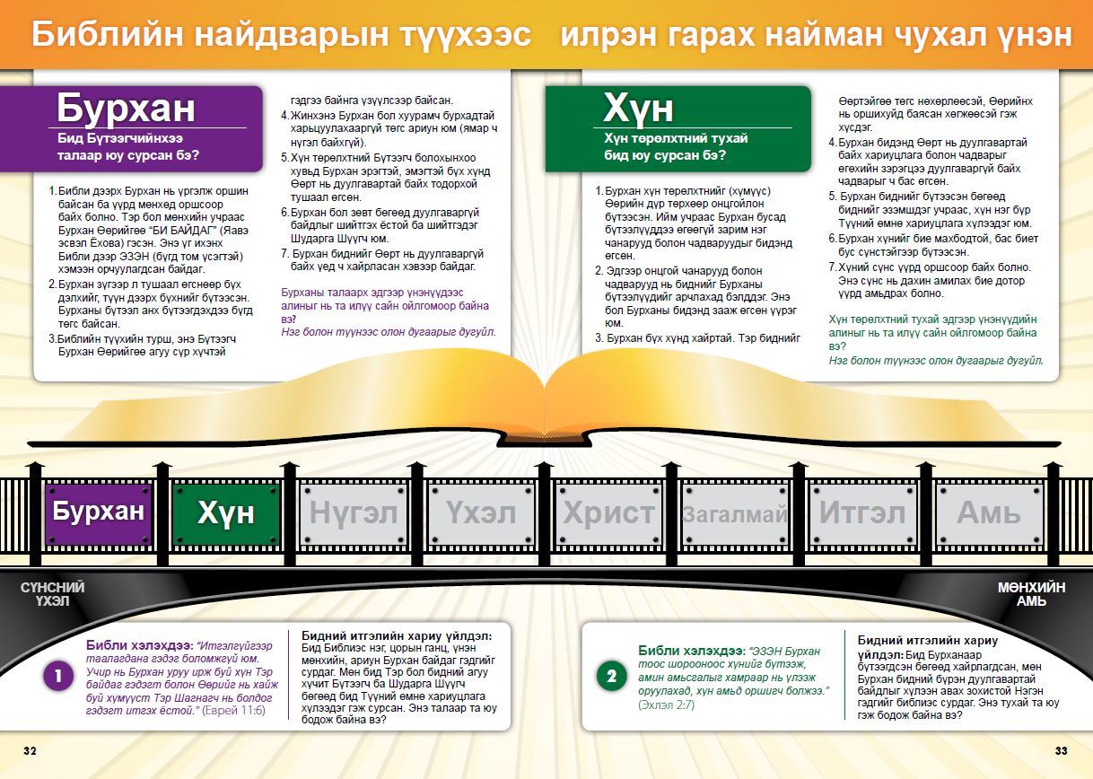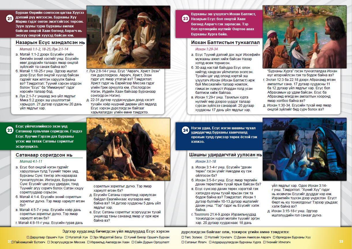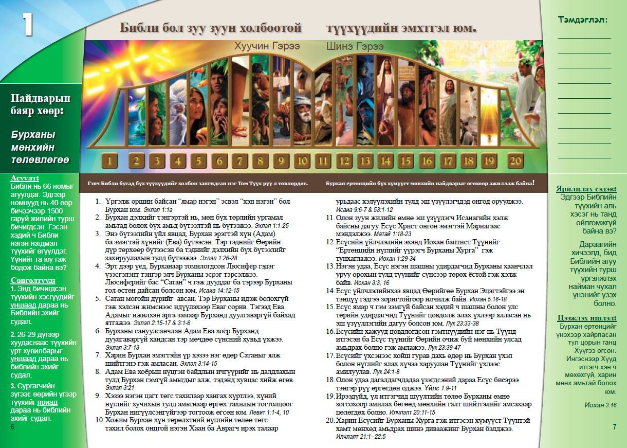 Итгэлийн үндэс-Хуучин Гэрээний сургалтаар төгс дэлхий гэм нүглээр хараагдсан тухай мөн Иудейн Хаан ертөнцийн Аврагч болох талаар өгөгдсөн амлалтын тухай түүхийг үзнэ.