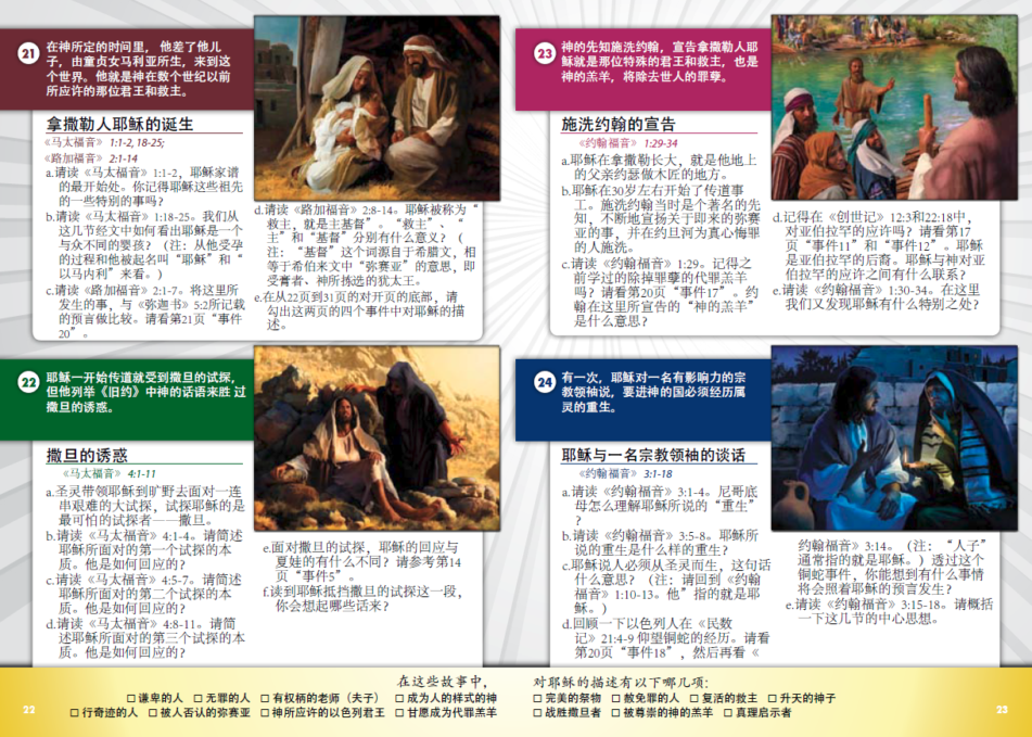 Forty strategically selected Bible events, twenty from the Old Testament and twenty from the New Testament, comprise this version of The Story of Hope. Each event is beautifully visualized. A set of evangelism-focused Bible study questions is included in the material for each event. The study book also includes colorful maps of the Bible lands, highlighting where the events occurred, as well as a very informative visual of the Old Testament's tabernacle in the wilderness. The Chronological Bridge (ChronoBridge) to Life, which follows the study of the redemptive story, summaries eight essential “eternal life or death truths" that emerge from the Bible's story of hope.