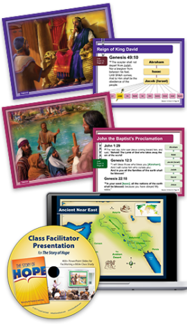 400+ PowerPoint slides for facilitating a Bible class study through The Story of Hope. Designed to accompany the FREE Class Facilitator Guide for The Story of Hope (curriculum for 31 class sessions). 94MB file.