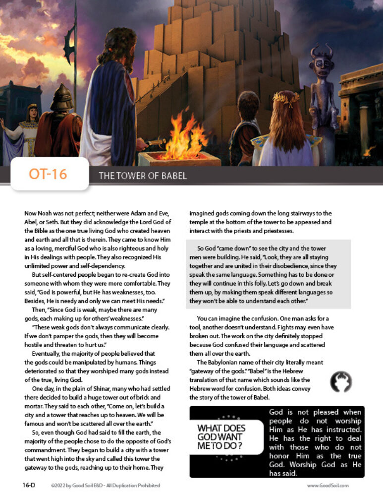 Book 2 covers 9 chronological events on early Bible history covering the three Bible Eras "Flood", "Babel", and "Patriarchs."